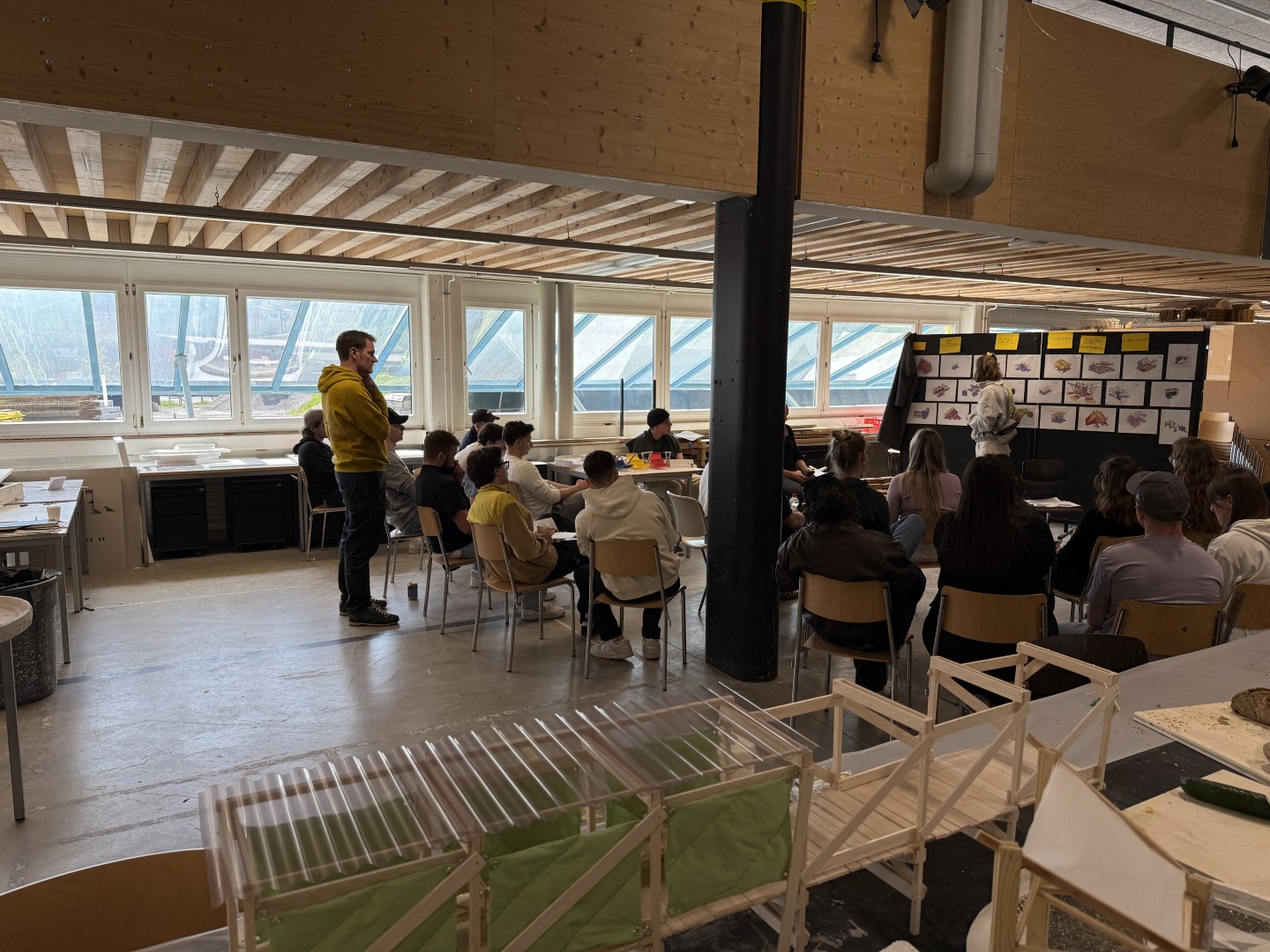 Neu ist in diesem Jahr die frühzeitige Einbindung der holzprojekt ag. Mit Pius Renggli und Josua Bossert übernehmen Holzingenieure das Tragwerkscoaching. Diese enge Zusammenarbeit zeigt Wirkung: Statische Überlegungen fliessen von Beginn weg in die Entwürfe ein. Das hilft, Fehler frühzeitig zu vermeiden – und stärkt das Verständnis zwischen Planung und Ausführung.